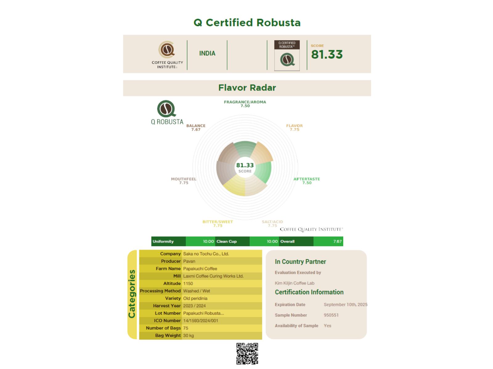 インドのパパクチ農園も「ファインロブスタ認証農園」です。